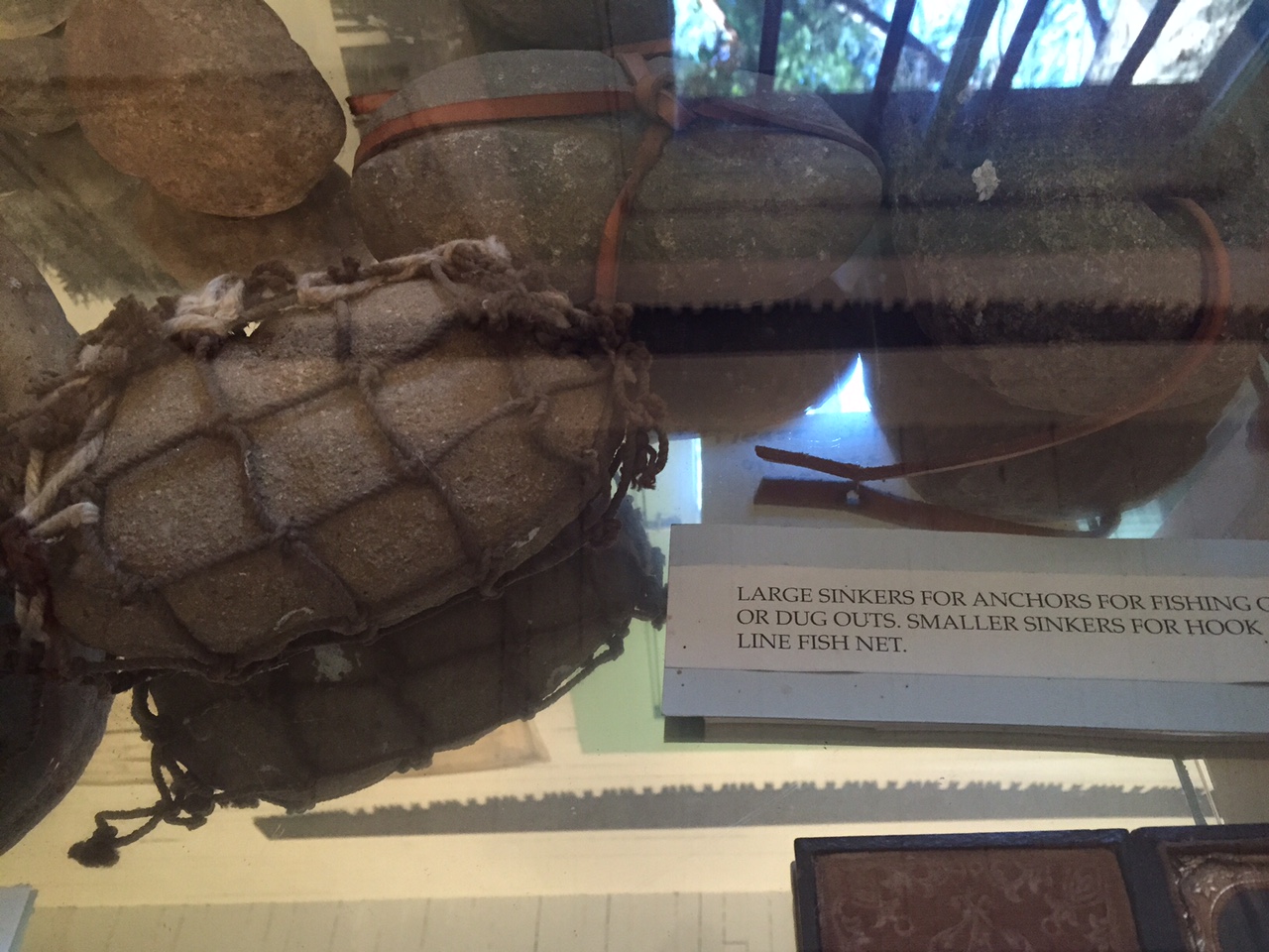 We’ve talked about anchor stones before, so I’ll just let the picture below sit as an example of how simple stones could be wrapped in basketry or net (though the one so wrapped is actually grooved), and grooved ones could be bound with cordage, as net weights or, more likely, as weights for fishing gear. As actual anchor stones, you’re probably looking at larger stones, like the one not really visible in the back, which is nicely pierced and must weight about 25 kg.