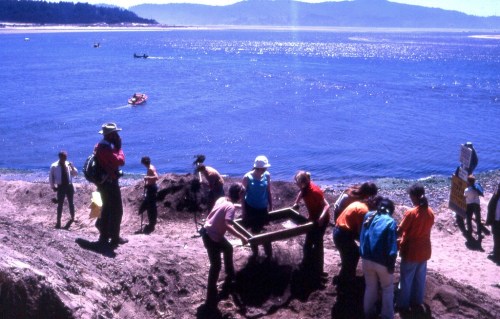 As promised, I am linking to a copy of the 1957 report (PDF) by Wilson Duff and Michael Kew on the Kunghit Haida town of SGang Gwaay, which has also been known erroneously as Ninstints. Little mention is made of the pole recovery aspect which was the subject of previous posts, though if you scroll all the way down in Duff and Kew’s article I append Duff’s report from that same issue of the “Report of the Provincial Museum of Natural History and Anthropology”. In that report, the personnel involved are noted and there is also a discussion of the activity of the “B.C. Totem Pole Restoration Committee.”