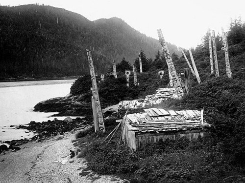 Yesterday, while posting CanadaGood’s flickr set of “totem poles” I found a really interesting document at the web site of the Gitsegulka community of the Gitxsan First Nation on the Skeena River. Called Adawkhl Gitsegulka, it is a history of the settlement written in 1979, by band members via consultation with hereditary chiefs. So often we only see these historical pamphlets for settler communities; it is quite fun and interesting and a little bit sad to read through this one written by First Nations themselves. For example, note how (page 7) the Indian Agent in 1909 respects the hierarchies of the hereditary chiefs, apparently only in order to establish himself as the highest ranking of the lot. Scroll down to page 35 for a discussion of the motives and means of carving poles.